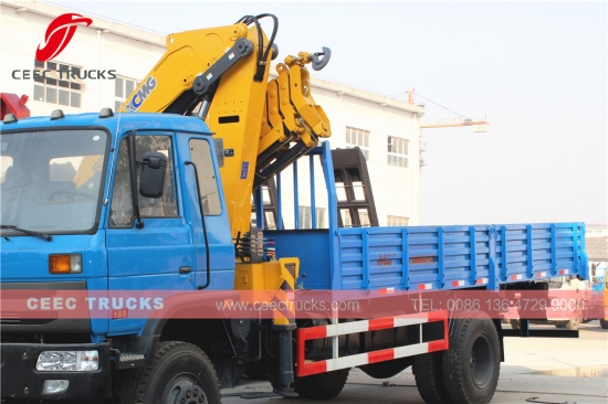 Autocarri con gru con braccio articolato Dongfeng 10 ruote da 10 tonnellate in vendita, motore diesel CUMMINS con tecnologia americana 210 CV, cambio manuale a 9 marce di serie, con guida a sinistra e modello con guida a destra come optional. Il peso massimo di sollevamento della gru articolata può essere 10.000 kg. Con il controllo remoto per il cliente scegli