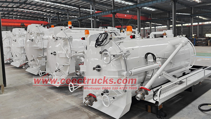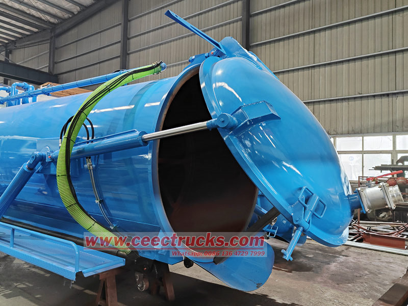 Il sistema di aspirazione, che comprende una pompa per vuoto e un separatore olio-gas, sfrutta la pressione negativa per estrarre i rifiuti. Il serbatoio è realizzato in acciaio ad alta resistenza e resistente alla corrosione ed è dotato di una finestra di ispezione e di una porta di alimentazione per lo stoccaggio delle acque reflue. Il sistema di tubazioni, che comprende tubi di aspirazione e scarico e una valvola di controllo, è responsabile del trasferimento dei fluidi. unità cisterna sottovuoto montata su camion Un sistema idraulico solleva il serbatoio e apre il coperchio posteriore, facilitando lo scarico delle acque reflue. La piattaforma operativa è dotata di pulsanti di comando e di un manometro per il monitoraggio in tempo reale della pressione.