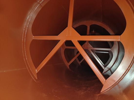 ● La porta di scarico è dotata di una struttura ad apertura rapida di ampio diametro, che consente uno scarico rapido e previene eventuali intasamenti residui. Un sistema di sollevamento idraulico consente di inclinare il serbatoio per lo scarico per gravità, migliorando ulteriormente l'efficienza di scarico.
