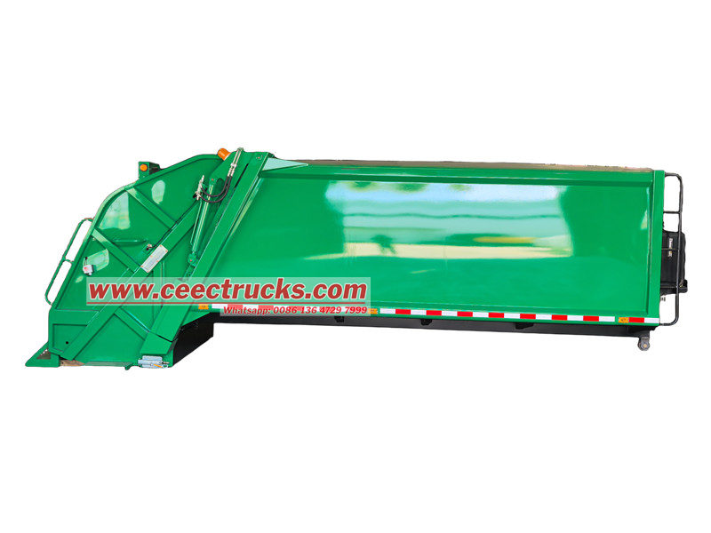 Il caricatore è costituito principalmente dal gruppo caricatore, dalla piastra di scorrimento, dal raschiatore e da altri componenti. Questi componenti utilizzano un design a trave o a scatola per prestazioni di carico superiori. Struttura della carrozzeria del camion per la raccolta dei rifiuti da 12 mcb è meticolosamente realizzato interamente con piastre di acciaio ad alta resistenza, garantendo la stabilità strutturale complessiva e raggiungendo al contempo obiettivi di progettazione leggeri.
