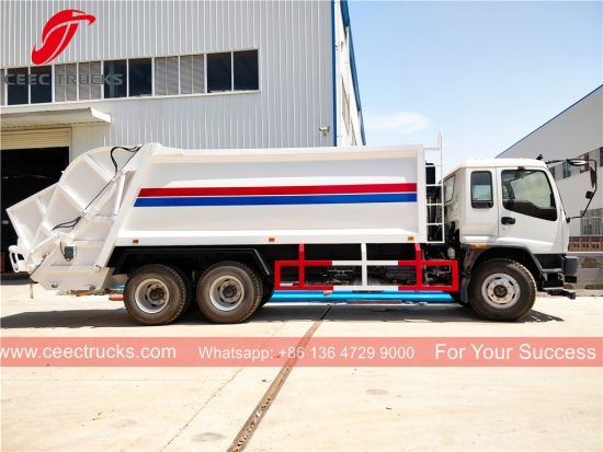 Il veicolo compattatore per rifiuti Isuzu (chiamato anche camion compattatori per rifiuti, camion per rifiuti pressati idraulici, camion compattatore per rifiuti, camion con caricatore posteriore) è progettato per il trasporto quotidiano dei rifiuti in ambienti abitativi di ogni genere città, grande stazione, porto e molo, aeroporto e densamente popolati aree come imprese industriali e minerarie e unità militari.