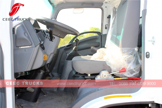 Camion compatto per rifiuti ISUZU 8cbm, telaio per camion ISUZU modello 4*2, motore diesel ISUZU 4HK1-TC 190HP, cambio manuale a 6 marce MLD, come per il corpo del compattatore per rifiuti 8000L, che utilizza acciaio materiale ad alta resistenza, con dispositivo di controllo elettrico e idraulico per funzionamento facile. la verniciatura e i loghi dipendono dalla richiesta del cliente