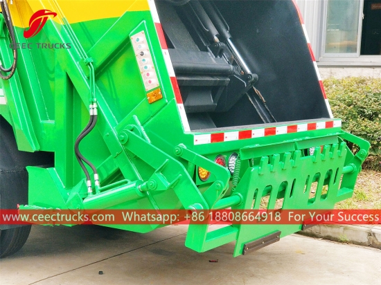 Esportazione in Kenya della struttura del corpo del camion della spazzatura con carico posteriore standard europeo da 8.000 litri, che utilizza un corpo compattatore in materiale d'acciaio ad alta resistenza, modello PLC di controllo importato, dispositivo di controllo del cilindro idraulico, scatola di controllo della versione inglese per un facile utilizzo.