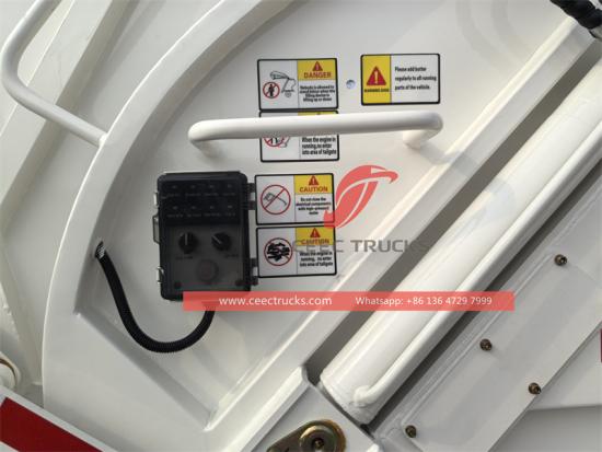 Il camion della spazzatura adotta una valvola di controllo elettroidraulica e un sistema di controllo programmabile PLC, che sfrutta appieno i vantaggi del controllo elettrico e idraulico. Grazie al controllo combinato elettroidraulico, risolve efficacemente il problema di interfaccia tra il sistema idraulico e quello elettrico, migliorando l'affidabilità d'uso.