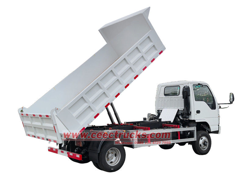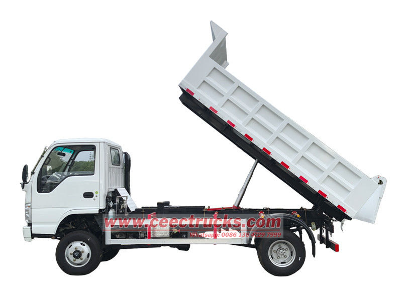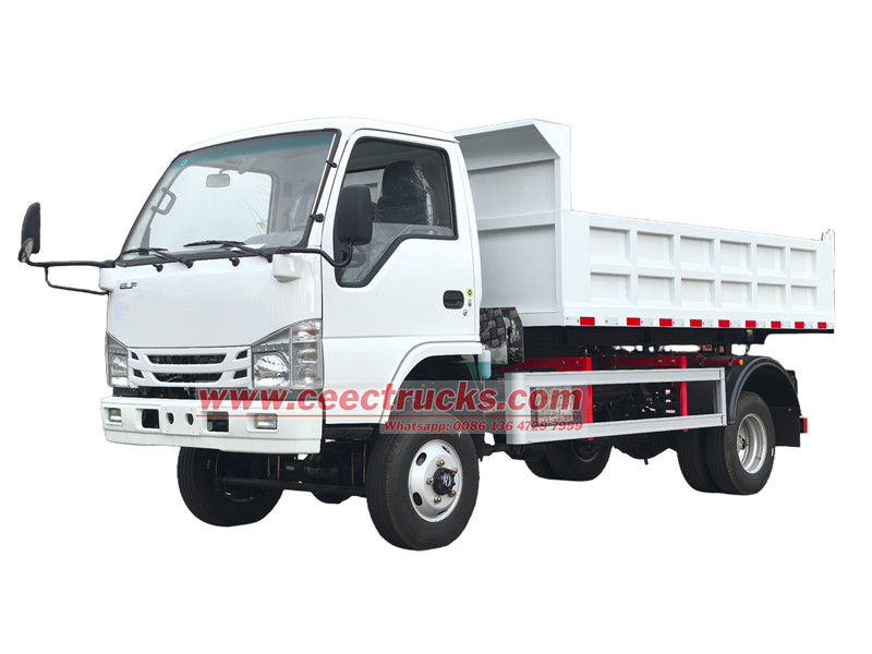 Autocarro con cassone ribaltabile piccolo Isuzu ELF da 2 tonnellate, chiamato anche autocarro con cassone ribaltabile Isuzu NKR, autocarro con cassone ribaltabile Isuzu ELF, autocarro con cassone ribaltabile con motore Isuzu da 120 CV, autocarro con cassone ribaltabile Isuzu ELF, ecc.