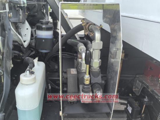 Il mini-dumper Isuzu è composto principalmente da telaio, sistema di sollevamento idraulico, cassone di carico e sistema di controllo. Il cassone di carico è saldato con piastre in acciaio ad alta resistenza e la parte posteriore adotta una struttura a gancio di bloccaggio automatico per garantire la tenuta durante il trasporto. Il sistema idraulico è costituito da una pompa dell'olio, un cilindro idraulico multistadio, una valvola di controllo e un serbatoio del carburante, mentre il sollevamento e l'abbassamento del cassone di carico sono controllati dal joystick in cabina.