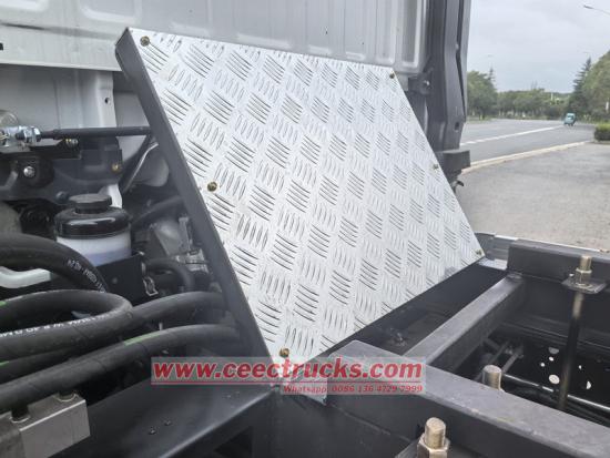Il dumper Isuzu ELF è dotato di un telaio in acciaio ad alta resistenza, un'elevata resistenza alla torsione, un'eccellente capacità di carico e la capacità di adattarsi alle strade sconnesse dei cantieri edili. Il sistema di scarico è dotato di cilindri idraulici a doppio effetto con elevata forza di sollevamento e un angolo di inclinazione massimo di 60° per il vano di carico, garantendo uno scarico rapido e accurato dei materiali. Il portellone posteriore è dotato di un sistema di bloccaggio automatico per impedire l'apertura accidentale durante il trasporto e migliorare la sicurezza.