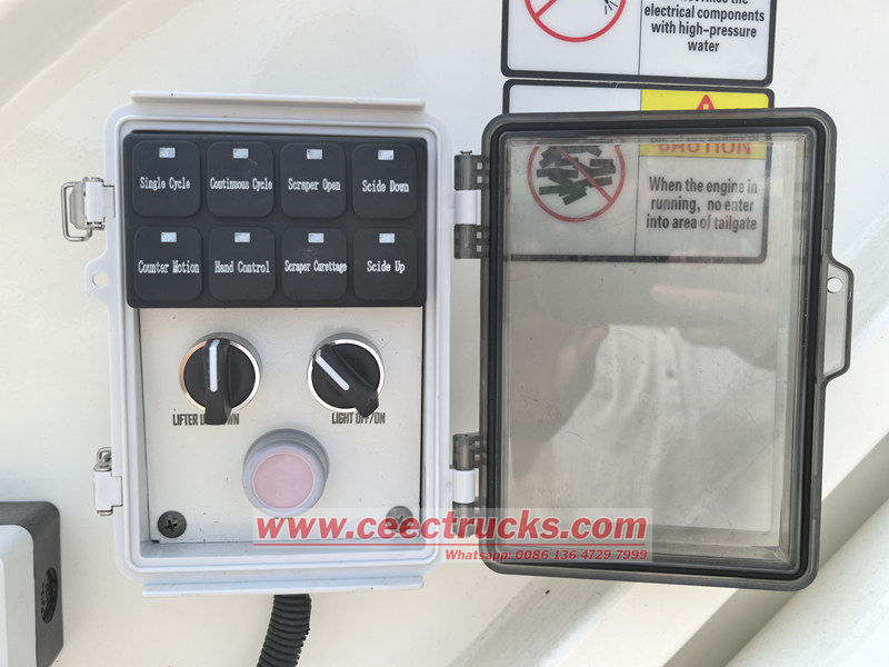 ● Un pulsante di arresto di emergenza è impostato per arrestare il dispositivo di pressatura e riempimento dei rifiuti in qualsiasi stato o posizione, per garantire la sicurezza degli operatori e delle attrezzature.