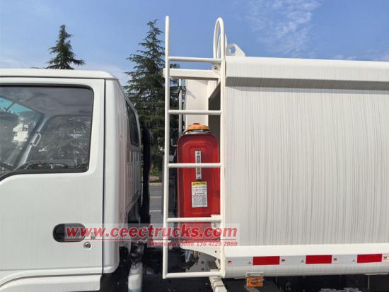 Il camion compattatore idraulico Isuzu ha una potente funzione di compressione che può comprimere in modo efficiente i rifiuti sfusi, aumentare la capacità di carico e ridurre la frequenza dei trasporti. Con passo da 3360 mm con motore 4JB1CN da 98 CV, emissioni Euro 4 diesel 2.771L, cambio Isuzu MSB a 5 marce, pneumatici 700R16 con un totale di 7 pezzi, con aria condizionata, USB, assistenza alla direzione, 3 posti. La parte superiore del corpo è un bidone della spazzatura da 6 mc, la parte posteriore è un meccanismo di ribaltamento della benna, ci sono 3 metodi per azionare il camion per caricare e scaricare.