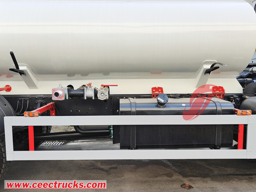 Struttura del serbatoio dell'acqua: Il serbatoio del camion dell'irrigatore è realizzato in lamiera di acciaio ad alta resistenza e la forma è solitamente ovale o quadrata per garantire capacità di carico e durata sufficienti. È presente una partizione previsto all'interno del serbatoio per ridurre l'impatto del veicolo sul liquido nel serbatoio durante la guida.