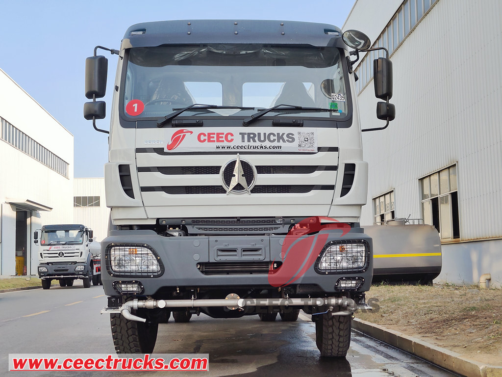 Il camion irrigatore Beiben 4x4 a trazione integrale è un irrigatore con tecnologia a quattro ruote motrici. Camion irrigatore ad acqua Beiben 1929 prodotto in base alla fabbrica Beiben e alle caratteristiche funzionali dei camion irrigatori ed è adatto a una varietà di condizioni stradali complesse ed esigenze di funzionamento degli irrigatori. Bowser ad acqua Beiben 1929 AWD ha dimostrato prestazioni e stabilità eccellenti in una varietà di scenari applicativi con la sua eccellente tecnologia di trazione integrale e l'efficiente funzione di irrigazione. L'autocisterna Beiben è uno degli strumenti indispensabili e importanti in i settori dell'igiene ambientale urbana, della manutenzione stradale e del soccorso d'emergenza. Il telaio originale del camion Beiben 4x4 con numero ND ND1190ED3J6Z22, classica cabina corta NG80B senza letto, modello fuoristrada 4x4 adatto al deserto e a condizioni stradali molto difficili. TOP 1 motore diesel WEICHAI di marca cinese modello WP10.290E32, 209KW / 290HP con emissioni 9726cc, cambio manuale FAST a 9 marce con 9 avanti e 2 retromarce, scatola di trasferimento speciale per camion con pozzo nero Beiben 4x4 fuoristrada è VG1400, sterzo 8098, piastra in acciaio per molle i pezzi sono 10/8+6, pneumatico personalizzato Modello 12.00R20 con 6+1 unità, inclusa una ruota di scorta, capacità cisterna carburante 400 litri, passo 4800 mm con capacità asse anteriore 7 tonnellate e capacità asse posteriore 13 tonnellate, verniciatura bianca personalizzata per cabina camion Beiben NG80B.