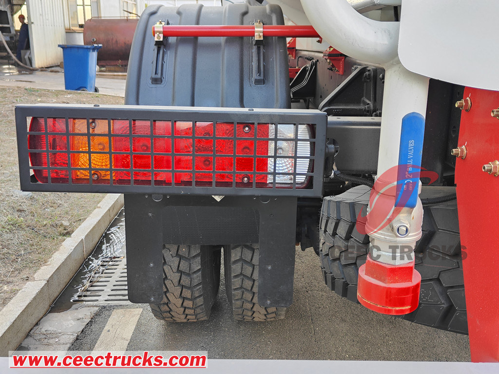 | Specifiche del serbatoio | 8000 litri Materiale serbatoio: acciaio al carbonio Q235. (Acciaio al carbonio, acciaio inossidabile o lega di alluminio sono opzionali) Dotato di irrigatore anteriore (posteriore, laterale) Dotato di pompa dell'acqua ad alta potenza Dotato di monitor dell'acqua, pistola ad acqua e cannone ad acqua Dotato di valvola antincendio, valvola dell'acqua e garza filtrante |