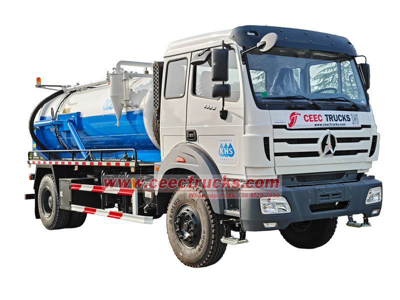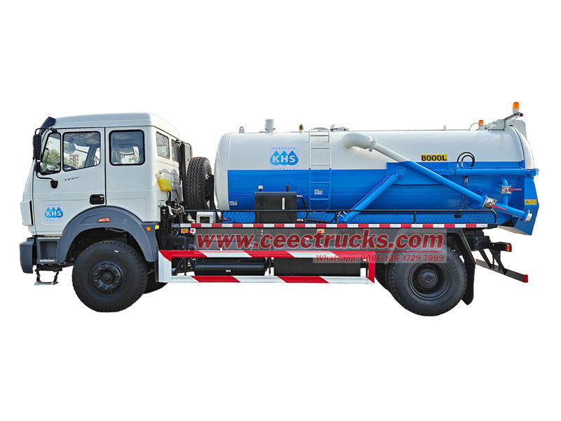 L'autocisterna Beiben da 8 m³ con pompa settica è basata sul telaio Beiben 1929, passo 4800, Euro 3 diesel 9.726L, dotata di un motore diesel WP10.290E32 da 290 CV e cambio FAST 9JS150A, pneumatici 12.00R20 per un totale di 7 pezzi, potente e facile da usare. Il veicolo è dotato di una cisterna per il vuoto da 8 m³, in grado di soddisfare diverse esigenze di dragaggio, come fognature urbane e condotte industriali.