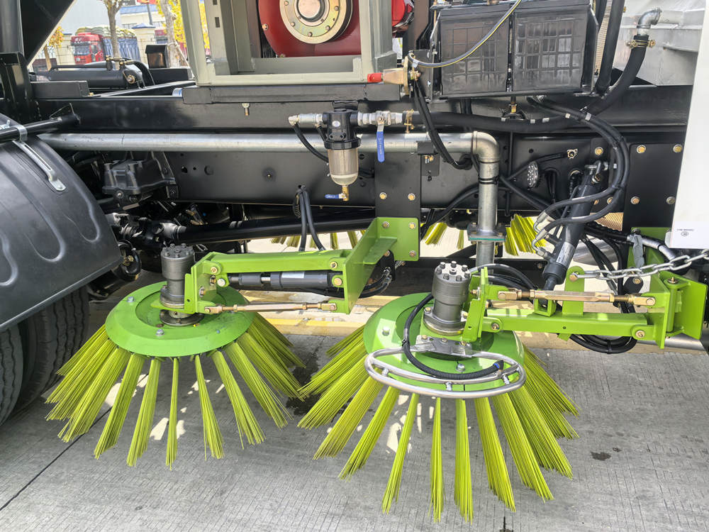 UN-†Il camion per la pulizia stradale Isuzu utilizza setole in nylon ad alta resistenza, e le spazzole principali e ausiliarie lavorano insieme per regolare la velocità e la pressione al suolo in base alle diverse condizioni stradali. L'angolazione delle spazzole può essere regolata automaticamente per garantire che non vi siano angoli morti durante la pulizia. Allo stesso tempo, è dotato di una funzione automatica di aggiramento degli ostacoli e può essere sollevato rapidamente in caso di ostacoli.