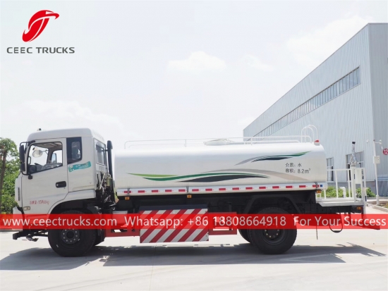 Veicolo per irrorazione d'acqua DONGFENG da 8.000 litri, telaio DONGFENG 4x2 con guida a sinistra, cambio manuale a 6 marce, motore diesel YUCHAI da 160 CV, pompa dell'acqua di marca famosa, con ugello di spruzzatura anteriore, centrale e posteriore opzionale. Tutti i dipinti e i loghi dipendono dai requisiti.
