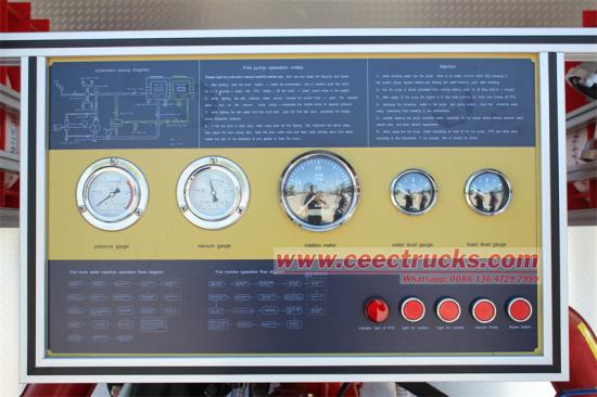 ●Pulsante di funzionamento:illuminazione (illuminazione per il funzionamento notturno), pulsante PTO (interruttore della presa di forza, avvia la pompa antincendio), pulsante di arresto di emergenza (interruzione di corrente con un solo pulsante per garantire la sicurezza).