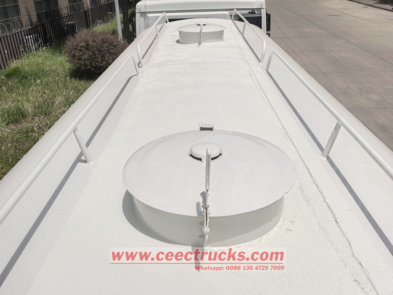 La parte superiore del corpo è un serbatoio d'acqua ellittico in acciaio al carbonio con una capacità di 20 mc, dotato di una pompa WEILONG 80QZF-60/90S e di contenitori per lo stoccaggio delle tubazioni su entrambi i lati. Inoltre, il veicolo ha anche tre modalità di spruzzatura opzionali: ugello dell'acqua anteriore, ugello dell'acqua posteriore e monitoraggio dello spruzzo con cannone ad acqua, che possono soddisfare varie esigenze operative di irrigazione.