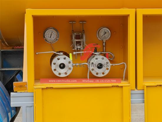 3 assi con ponte BPW (13T), 12R22.5 12PR (13 pezzi), perno di articolazione JOST, gamba JOST (25T), misuratori di livello del liquido meccanici, doppio misuratore di pressione, doppio termometro, doppia valvola di taglio di emergenza, quattro valvole a sfera, doppia valvola di sicurezza, due cassette degli attrezzi, uscita singola, doppio sistema di carico e scarico, protezione parasole in alluminio, 2 set di estintori da 9 kg tipo ABC, 1 set di estintori da 2 kg tipo CO2, 3 set di targhe segnaletiche di pericolo, 2 set di targhe arancioni numerate, misuratore di portata con stampante |