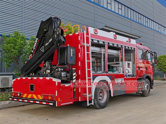 HOWO 4x2 Mobile Lighting Fire Truck with knuckle CraneAutocarro antincendio di medie dimensioni HOWO 4x2°rotazione e sollevamento multi-condizione, adatti per operazioni di soccorso, rimozione di ostacoli, ricostruzione e altri compiti.