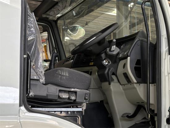 Disposizione ragionevole dello spazio: Il vano motore, la cabina e il cassone di carico sono disposti in modo compatto per lasciare spazio all'installazione del braccio e al raggio operativo senza compromettere la visuale di guida.