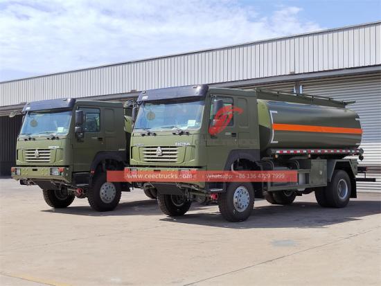 Equipped with fuel dispenser and hose reel for refueling workIL Come? fuori strada 1 0 Autocisterna mobile per carburante da 000 litri È lo speciale minerario Rif carburante ing cisterna camion . IL Autocisterna di carburante Howo utilizzando 4X 4 guidare sistema E Esso ' S dotato di un Modello WP12S400E201 modello 6 Motore diesel turbocompresso con intercooler, raffreddato ad acqua, a 3 cilindri in linea con una potenza massima di 400 CV Il cambio è 10 velocità anteriori e 2 velocità posteriore, dotata di frizione a membrana rinforzata. Il serbatoio di carburante Howo ha una potenza elevata e una buona controllabilità, adatto a diverse condizioni stradali per il trasporto di petrolio.