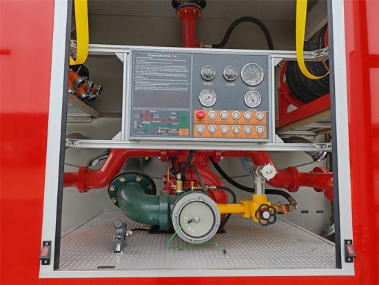 La pompa antincendio è azionata da una presa di forza, con un intervallo di pressione di 1,6-2,5 MPa e una portata di 80-120 kg/s. Il cannone antincendio ha una velocità di spruzzo di 60-100 kg/s e una gittata di 40-60 metri, in grado di rispondere efficacemente a diverse situazioni di incendio. Camion dei pompieri Howo è inoltre dotato di un set completo di attrezzature standard per il soccorso antincendio, come pale, piedi di porco, asce e attrezzature da taglio; scale e fari sono opzionali.