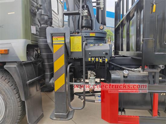 ● Disposizione della gru: La gru a braccio dritto XCMG KSQS200-4 è installata nella parte anteriore del cassone, la piattaforma girevole è rigidamente collegata al telaio tramite bulloni e una posizione di installazione del contrappeso è riservata per migliorare la stabilità. La disposizione del cassone e della gru è stata calcolata in base al baricentro per garantire una distribuzione adeguata del carico sugli assi durante la guida.