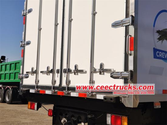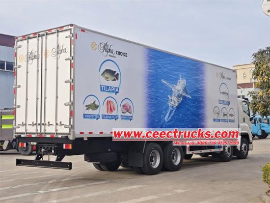 Il camion refrigerato ISUZU GIGA 8x4 viene modificato sulla base del chassis di cabina ISUZU GIGA VC66, dotato di 1850+4575+1370 mm a passo, 6UZ1-TCG61 380HP Motore 10500, Fast a 12 a velocità, il veicolo adotta l'unità di refrigerazione 1250, la dimensione interna della carrozzeria di veicolo+2800 mm PU FOAM + FRP 105mm Materiale, porta posteriore a doppia apertura a grandezza naturale Questo camion refrigerato viene utilizzato principalmente per trasportare frutti di mare ed è una scelta ideale nel campo logistico della catena del freddo come i frutti di mare.