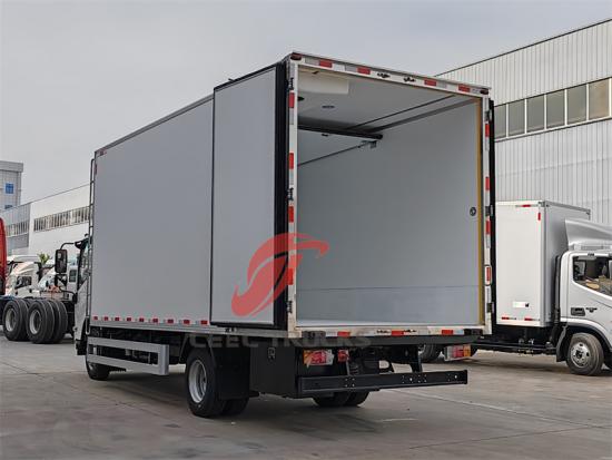 Il camion refrigerato Isuzu 700P da 4 tonnellate è stato modificato sulla base del telaio del camion medio Isuzu 700P ed è progettato per un trasporto efficiente nella catena del freddo. Equipaggiato con motore Isuzu 4HK1-TCG61 Euro VI (190 cavalli, cilindrata 5193 ml), abbinato a un cambio Isuzu MLD a 6 marce, offre una potenza elevata e un eccellente risparmio di carburante. Il veicolo è dotato di aria condizionata, interfaccia USB, servosterzo e cabina a 3 posti, garantendo comfort e praticità, con una velocità massima di 110 km/h, soddisfacendo le esigenze della logistica della catena del freddo su medie e brevi distanze.