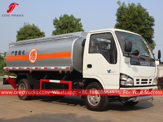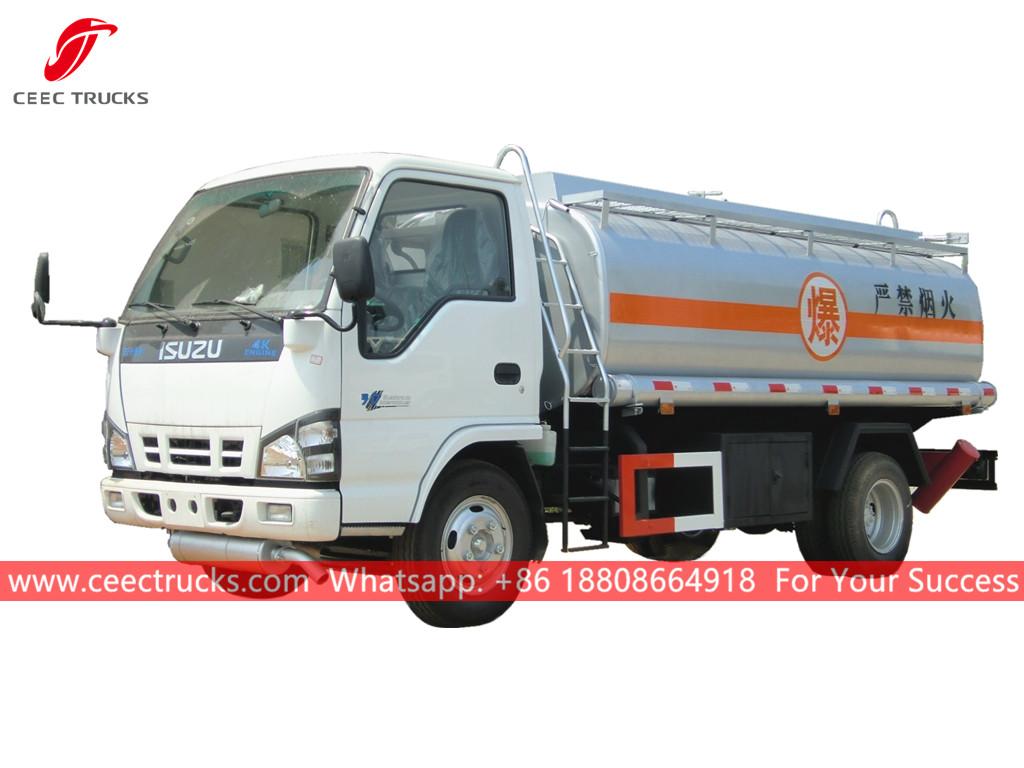 Camion bowser a olio da 5 m3, telaio ISUZU 4x2, cambio manuale a 5 marce, motore diesel ISUZU 130 HP, carburante standard cisterna, pompa dell'olio di marca famosa di serie. Tutti i dipinti e i loghi dipendono su richiesta.