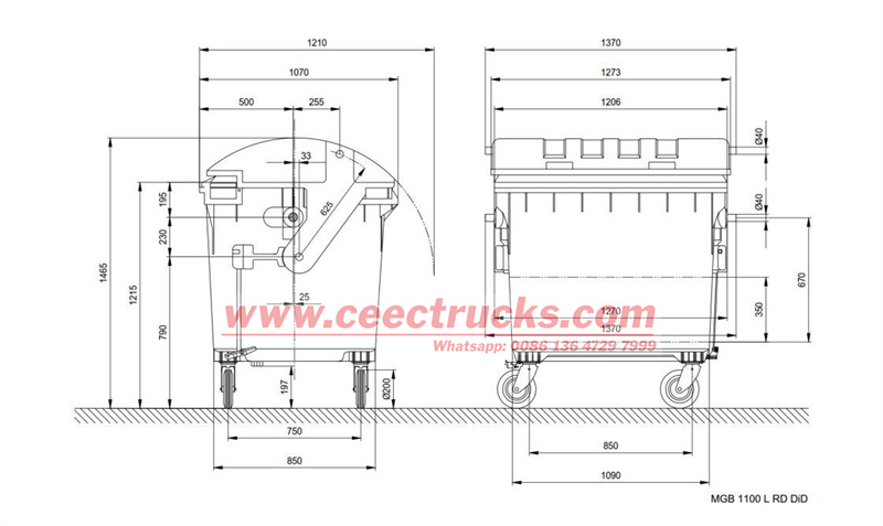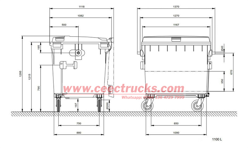 | Davanti | Circa 230l, sulla parte anteriore del furgone della spazzatura | |