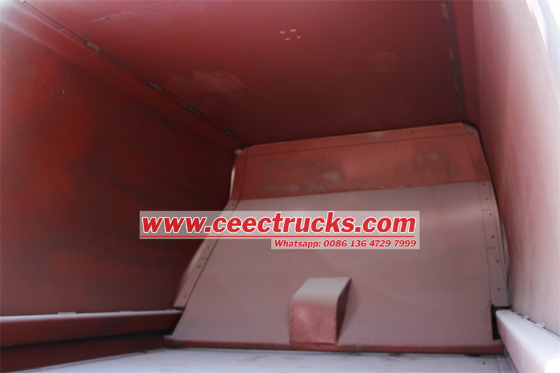 ISUZU NKR Waste Compactor Trucks sono nuovi veicoli igienico -sanitari che raccolgono, trasferiscono e trasportano immondizia per evitare l'inquinamento secondario Il portellone posteriore del compattatore della spazzatura viene utilizzato per connettersi con il bidone della spazzatura o il secchio della spazzatura, e insieme sono combinati in una stazione di trasferimento della spazzatura mobile per realizzare il riciclaggio e il trasporto senza inquinamento e il trasporto di più secchi di immondizia in un veicolo Il portellone è dotato di un meccanismo di flip, con modalità di funzionamento elettronica e manuale La scatola di controllo è installata nella cabina e nella parte posteriore del portellone C'è una striscia di tenuta in gomma di spessore 3 mm nella parte posteriore e un serbatoio di fognatura di grande capacità Il veicolo può essere stampato con motivi e testo in base alle esigenze dei clienti