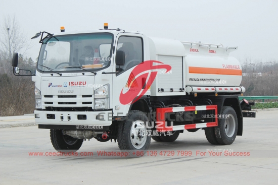 Camion ISUZU 4×4 per il rifornimento di carburante (anche chiamato camion cisterna per carburante ISUZU AWD, camion per il rifornimento di carburante fuoristrada ISUZU 4×4, bowser diesel ISUZU 4×4, ISUZU camion bowsoer per olio, prezzo di fabbrica camion ISUZU AWD per carburante, camion cisterna fuoristrada ISUZU per benzina, ISUZU produttore del camion di rifornimento) è utilizzato per il trasporto di petrolio, diesel, benzina, cherosene, ecc.
