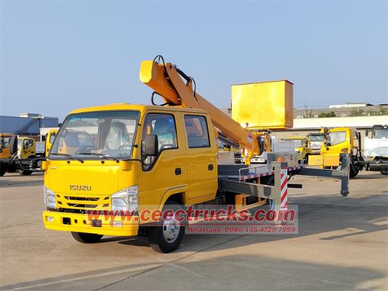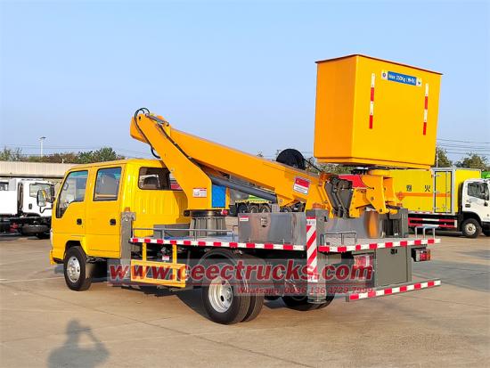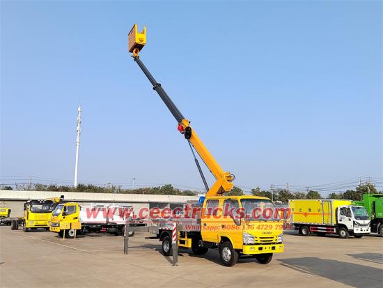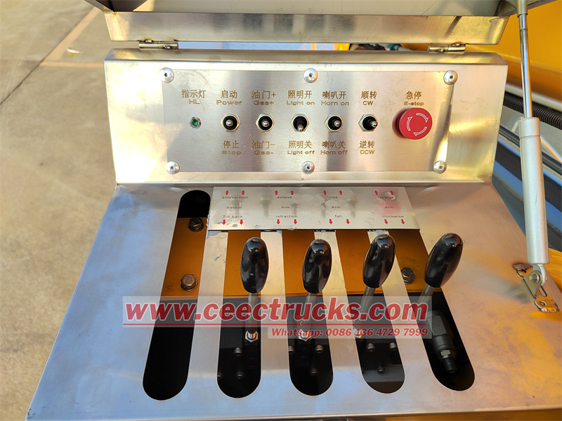 Truck di CEEC prodotti ISUZU 12M 4KH1N6MD 140 CHP Truck di sollevatore aereo Progettato per fare affidamento completamente sui vantaggi dell'originale telaio giapponese di doppia cabina ISUZU con 2+4 posti, considerano pienamente la comodità e l'affidabilità del prodotto Arms di lavoro sotto forma di tre livelli, i vantaggi del veicolo di una vasta area di lavoro che possono essere fino a 16 m, possono adattarsi ai requisiti delle diverse condizioni di lavoro Sistema di propulsori che utilizza la trasmissione idraulica montata su sella e secchio di rotazione a slewing ciascuno con un sistema operativo separato, le priorità del sistema operativo, quindi le operazioni del secchio ISUZU a doppia cabina camion dotata di protezione da overflow, energia di emergenza, blocco del cilindro e altri dispositivi di sicurezza per garantire operazioni di sicurezza.