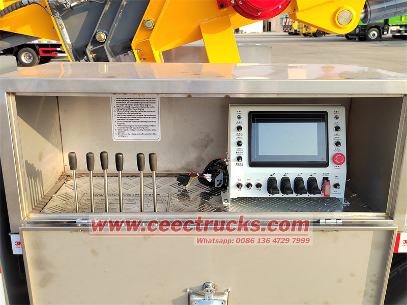 CAN BUS Remote control box for easy operationAppena personalizzato Il camion della piattaforma aerea di fila ISUZU è montata su Mini Elf Series Double Row Cab Design può ospitare più operatori o strumenti e migliorare l'efficienza della collaborazione del team ISUZU 16M ATERIAL LIFTER TRIMS is produced based on original Japanese ISUZU double cabin, with 2+4 seats and comfortable driving feeling, equipped with an efficient diesel engine 4KH1N6MD model with 103KW / 140HP, emission can be 2999cc EURO 6 standard, also we can customized to remove DPF and ADBlue device, which can make truck working as EURO 3 & 4 to meet requirement on Asia and Africa, it has low fuel consumption, high reliability, e si adatta a condizioni stradali complesse Montato con cambio manuale MSB 6 Shift con 6 in avanti e 1 inverso per una guida conveniente e di sicurezza Forte capacità di carico e alta stabilità del telaio, adatto per l'installazione di attrezzature da lavoro per impieghi pesanti Altezza di lavoro per il Truck di piattaforma di lavoro del braccio dritto isuzu Può essere massimo di circa 16 m, coprendo la maggior parte delle esigenze di lavoro di media e grattacieli, come la manutenzione dei lampioni, la costruzione di muri esterni, l'edificio, la costruzione di pareti esterne, leggermente meno flessibile del tipo di braccio pieghevole ma con un raggio di lavoro più lungo