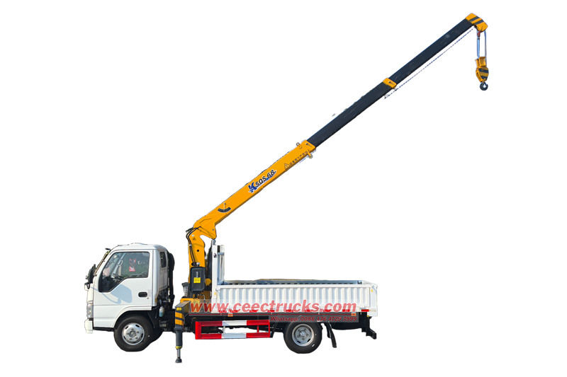 La gru per autocarri Isuzu ELF da 3,2 tonnellate offre un'ampia gamma di tonnellaggi opzionali, tra cui 2 tonnellate, 3,2 tonnellate, 4 tonnellate e così via, fino a 30 tonnellate. Per quanto riguarda il tipo di gru, i clienti hanno la flessibilità di scegliere tra una gru a braccio dritto o una gru a braccio pieghevole.