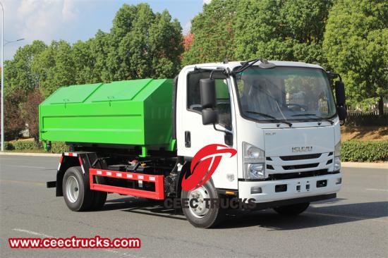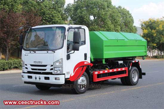 6 tons Hook lift garbage truckCamion scarrabile multilift Isuzu ELF chiamato anche camion scarrabile roll-on Isuzu ELF, camion della spazzatura con gancio di scarico Isuzu 700P, camion con gancio di carico Isuzu ELF 700P da 6 tonnellate, camion con gancio di scarico Isuzu con container, Camion della spazzatura con scarrabile scarrabile Isuzu NPR.Il camion con scarrabile multilift Isuzu ELF rappresenta una miscela di design robusto, funzionalità versatile e ingegneria avanzata. Questo camion è progettato su misura per applicazioni che richiedono il carico, il trasporto e lo scarico efficiente di vari carichi, in particolare quelli che beneficiano di un sistema scarrabile.