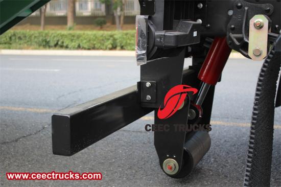 Passaggio 3. Quando il gancio del braccio è agganciato al gancio del cassone del cassone, continuare a spingere la maniglia di azionamento del braccio verso il basso nella posizione abbassata per consentire al cassonetto della spazzatura di continuare a caricare il veicolo (Nota: assicurarsi che la trave longitudinale del cassonetto della spazzatura si trova tra i due rulli posteriori sulla coda del telaio attaccato);