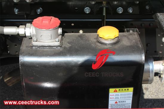 Pompa dell'olio idraulico e valvola di funzionamento, valvola di bilanciamento, blocco idraulico, cilindro dell'olio di funzionamento principale del braccio del gancio, cilindro dell'olio scorrevole del braccio del manicotto, tubo dell'olio idraulico, serbatoio dell'olio idraulico, rinforzo idraulico stabilizzatore posteriore. Modo operativo: funzionamento manuale e con telecomando wireless. One cassone ribaltabile, |