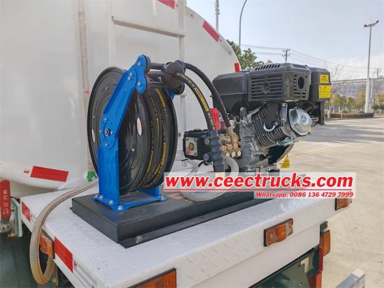 La velocità di rotazione della macchina per la pulizia raggiunge 2900 rivoluzioni al minuto (R P M.) Questo design della pompa rotante ad alta velocità non solo migliora l'efficienza del getto d'acqua, ma garantisce anche la stabilità e la durata della macchina per la pulizia durante il funzionamento continuo a lungo termine Elevata velocità di rotazione significa una maggiore efficienza di lavoro e una maggiore capacità di pulizia, consentendo al camion per irrigazione d'acqua di rispondere rapidamente durante il funzionamento e completare le attività di pulizia della superficie stradali di grandi dimensioni