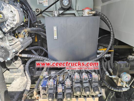 Completando il sistema idrico ad alta pressione, la spazzatrice per strada ISUZU FVR 12-Cubic-Meter presenta anche un sistema idrico a bassa pressione per attività di pulizia più ampie e più delicate Il sistema è alimentato da una pompa Hangzhou Weilong 60/90, in grado di fornire una portata di 60 metri cubi all'ora Ciò consente la distribuzione dell'acqua continua e persino su una vasta area