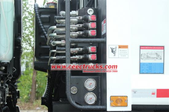 — - Sistema idraulico: È costituito da un serbatoio del carburante, una pompa dell'olio, una valvola a più vie, un cilindro idraulico, una conduttura, ecc La pressione idraulica è generalmente impostata su 16MPa e la potenza è ottenuta dal motore attraverso il decollo di potenza per guidare il carico e lo scarico, la compressione, il sollevamento e altre azioni