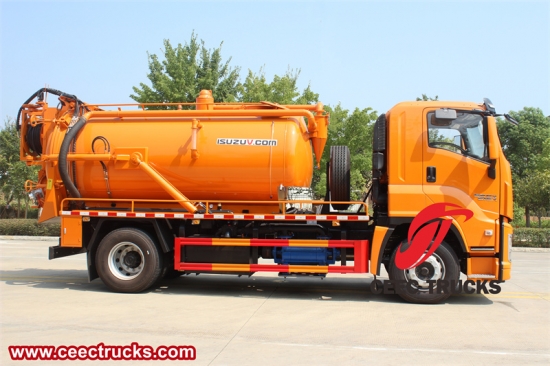 L'integrazione di un'unità di aspirazione a getto all'interno dell'Isuzu FVR GIGA jetter combinato il camion annuncia una nuova era di eccellenza operativa e versatilità. Il sistema integrato fornisce una soluzione completa per la gestione dei rifiuti liquidi, consentendo un'estrazione efficiente di liquidi, fanghi e detriti consentendo al contempo operazioni di pulizia ad alta pressione. Il camion per fognature combinato Isuzu FVR unisce funzionalità di getto e aspirazione per semplificare i flussi di lavoro, ottimizzare la produttività e garantire un processo completo di rimozione dei rifiuti.