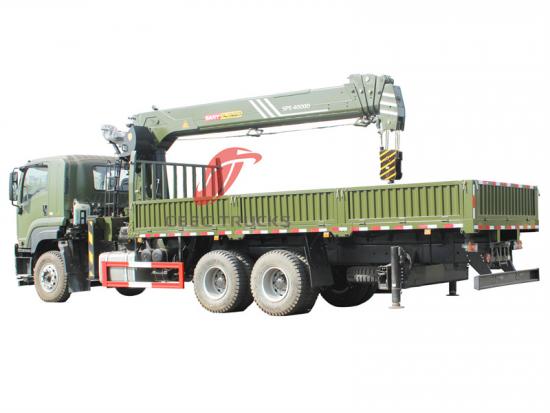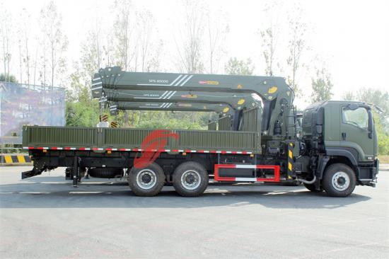 La gru idraulica per autocarro Isuzu GIGA ha una struttura a braccio dritto con uno sbraccio fino a 15 metri, coprendo un raggio d'azione più ampio, ideale per installazioni ad alta quota (come lampioni, cartelloni pubblicitari) o per sollevamenti a lunga distanza. La valvola proporzionale elettroidraulica con sistema di rilevamento del carico consente la micromanipolazione dell'estensione e del brandeggio del braccio, ideale per sollevamenti di precisione. La capacità di sollevamento massima di 14 tonnellate (a corto raggio) e la capacità di sollevamento a media e lunga distanza sono graduate e adattate, ad esempio è possibile mantenere una capacità di sollevamento di 2-3 tonnellate con un raggio di 10 metri, rispondendo in modo flessibile a diverse esigenze.