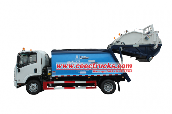 10cbm garbage bin,with 4 operation methodsIl camion compattatore del caricatore posteriore ISUZU NPR è dotato di un motore diesel da 4HK1-TCG61 con una potenza massima di 189 cavalli/139kW e una coppia di picco di 507 nm È abbinato a una trasmissione manuale a 6 marce Isuzu MLD, che è potente e stabile Il bidone del camion del caricatore posteriore ISUZU NPR è realizzato in acciaio ad alta resistenza Le parti chiave come il pavimento (4 mm) e i pannelli laterali (3 mm) sono rinforzate dal taglio laser/plasma e dai processi di saldatura automatizzati per garantire la durata del corpo Con la sua compattazione efficiente, potenza forte, design modulare e rigorosi standard di produzione, il camion del caricatore posteriore ISUZU NPR è diventato una soluzione ideale per lo smaltimento dei rifiuti urbani e rurali