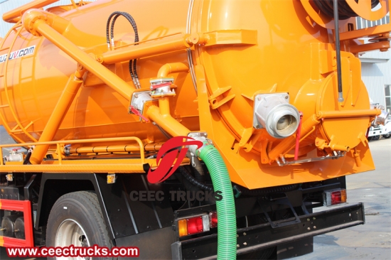 La parte posteriore del camion è dedicata al sistema di idrogetto e alle sue attrezzature di supporto. La pompa ad alta pressione e il serbatoio dell'acqua sono montati saldamente sul telaio, con punti di facile accesso per la manutenzione e il rifornimento. Il serbatoio dell'acqua è in genere abbastanza grande da contenere diverse centinaia di litri d'acqua, consentendo sessioni di pulizia prolungate senza la necessità di ricariche frequenti.