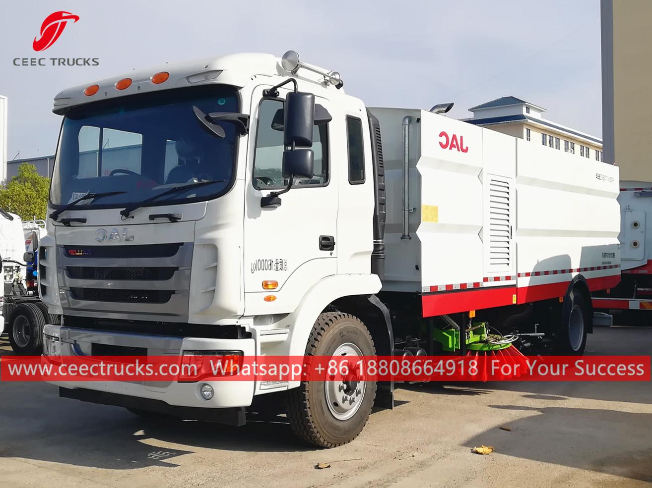 Autocarro spazzatrice e lavastrada JAC (chiamato anche JAC spazzatrice stradale con impianto di lavaggio, autocarro spazzatrice e lavastrada idraulico, autospazzatrice aspirante con lavatrice, Autocarro lavastrade JAC) è progettato per lo spazzamento quotidiano in comunità, città, autostrade, cantieri, strade sopraelevate, ponti, piazze, aeroporti nonché banchine con asfalto manto stradale in cemento e cemento.