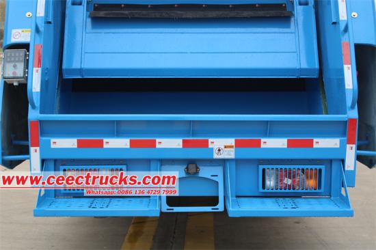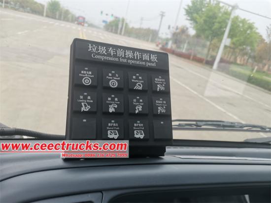 Il camion si vanta Sistemi di controllo avanzati che facilitano un funzionamento facile ed efficiente È dotato di un sistema di controllo elettrico di Taiwan Yonghong PLC (Programmable Logic Controller), che consente un'automazione precisa e affidabile del processo di compattazione della spazzatura Ci sono due serie di pulsanti di controllo elettrico strategicamente posizionati per comodità dell'operatore: uno set all'interno della cabina del conducente e un altro set sul lato sinistro del portellone Inoltre, il camion è dotato di un dispositivo di funzionamento manuale idraulico situato nella parte posteriore della cabina, fornendo un metodo alternativo per controllare le funzioni di compattazione della spazzatura in caso di guasto del sistema elettrico o per sovraccarico manuale Questo doppio sistema di controllo garantisce che il camion possa essere gestito senza intoppi ed efficiente, soddisfacendo le diverse esigenze delle operazioni di gestione dei rifiuti