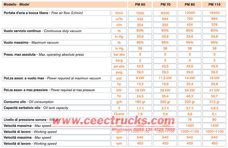 ● La pompa PM80A offre un eccellente equilibrio tra efficienza, durata e facilità di manutenzione, rendendola adatta all'installazione su autocarri aspiranti per acque reflue e per operazioni continue e ad alta intensità.