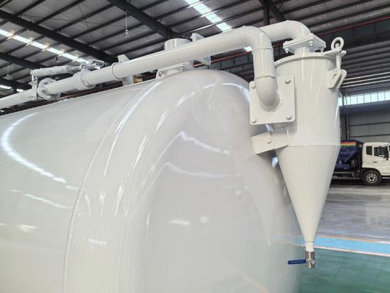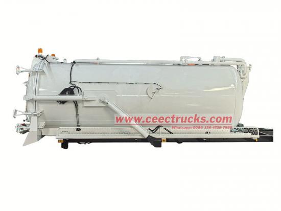 Il cassone dell'autocisterna settica è costituito principalmente da un serbatoio per vuoto da 10 m³, una pompa per vuoto, un tubo di aspirazione e un sistema idraulico. Il serbatoio è realizzato in acciaio ad alta resistenza, garantendo un'eccellente tenuta per prevenire la contaminazione secondaria. La pompa per vuoto MORO fornisce un'aspirazione potente, estraendo rapidamente fanghi, liquami e fanghi. Il tubo di aspirazione dei liquami può essere utilizzato in modo flessibile per soddisfare le esigenze di molteplici scenari operativi.